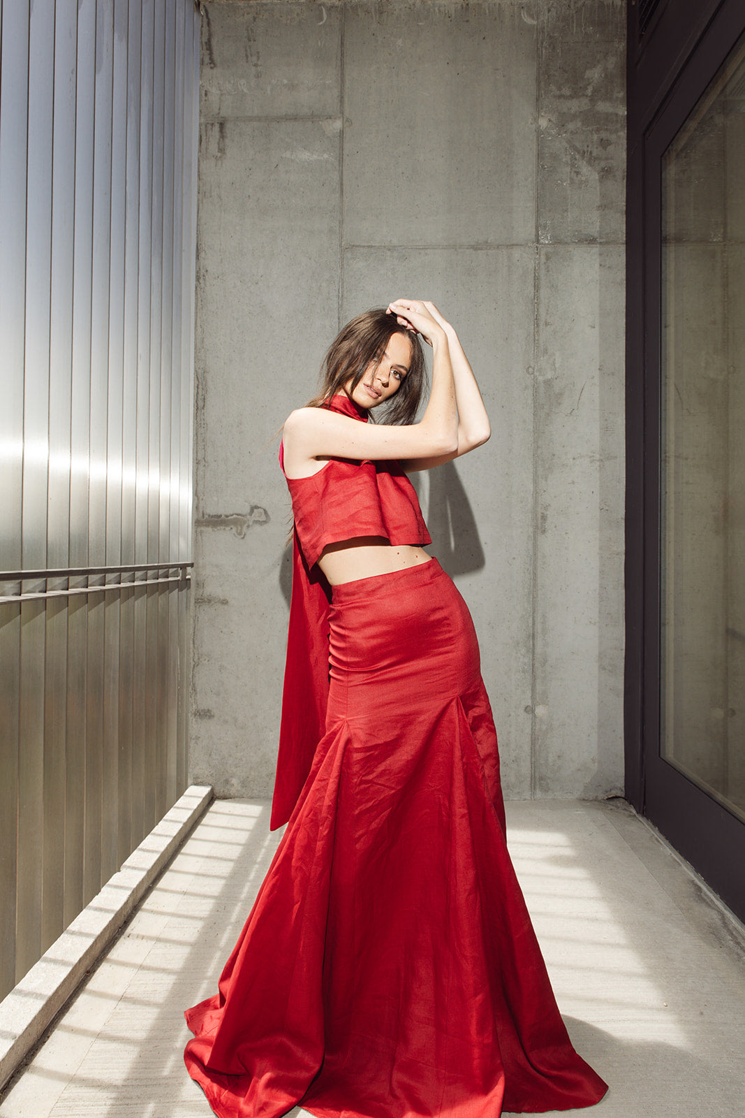 Scarlet Red Ramie Maxi Skirt. Breezy days meet bold color in this striking red ramie maxi skirt. Designed with a high waist and effortless flow, it moves with you—from slow seaside walks to city sunsets. The lightweight ramia (plant from the nettle family) keeps things cool, while the rich red hue brings just the right amount of drama. Pair it with a simple tank or a matching MINAMI crop for an easy, elevated summer look. Airy. Elegant. Unapologetically vibrant.
