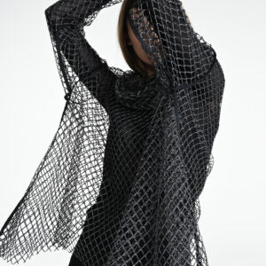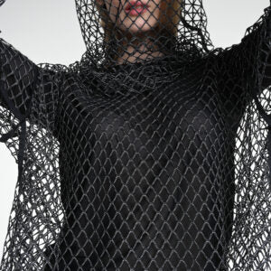 This is a sheer fishnet mesh tunic the collar can be worn separately. Perfect over black basic shirt. And to vamp-up for unexpected night out. It is made by 50% cotton and 50% polyester. Care Instructions: machine wash according to care labels.